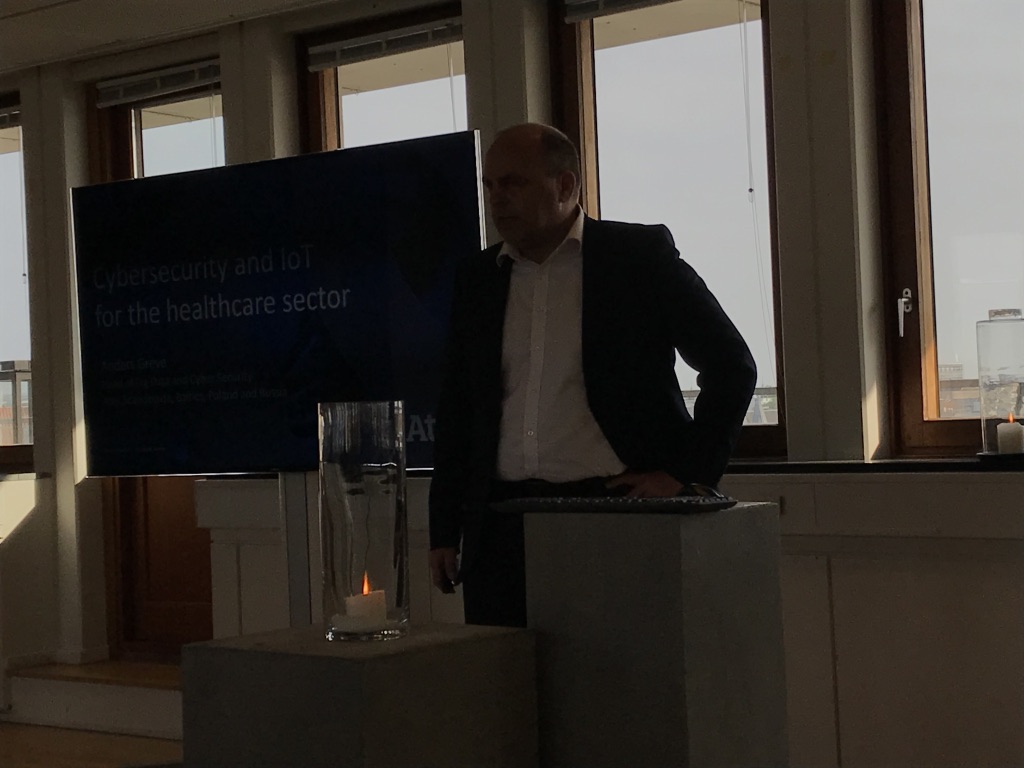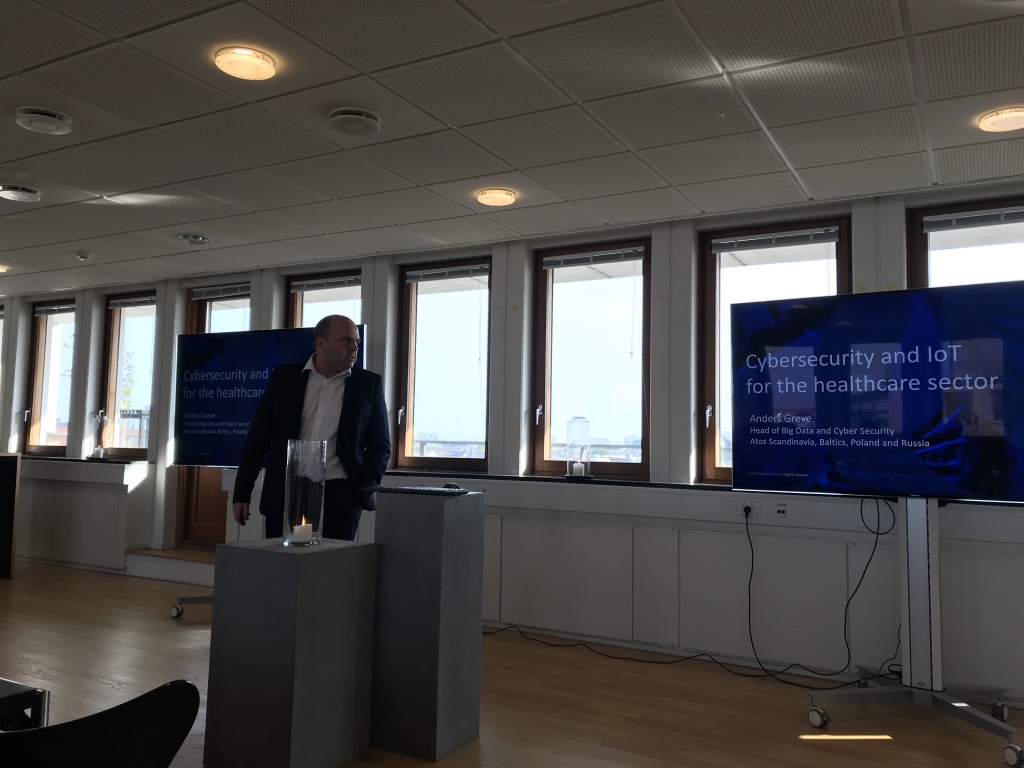 Ourthird speaker was Anders Greve, who is Head of Big Data and Cyber Security at Atos Scandinavia, Baltics, Poland and Russia. Atos is a leader within digital transformation and cyber security. Anders Greve shared his expertise on cyber security within the healthcare sector, a crucial but also vulnerable sector. With the demographic development and an aging population, the Health Care sector is growing fast and so are the use of IoT devices and AI – and the derived security challenges. To handle these challenges, Atos has developed a risk analysis model, that considers all connected devices as an IoT ecosystem. After mapping IoT environment and analyzing vulnerabilities and Threats, Atos customizes a security system and procedures.