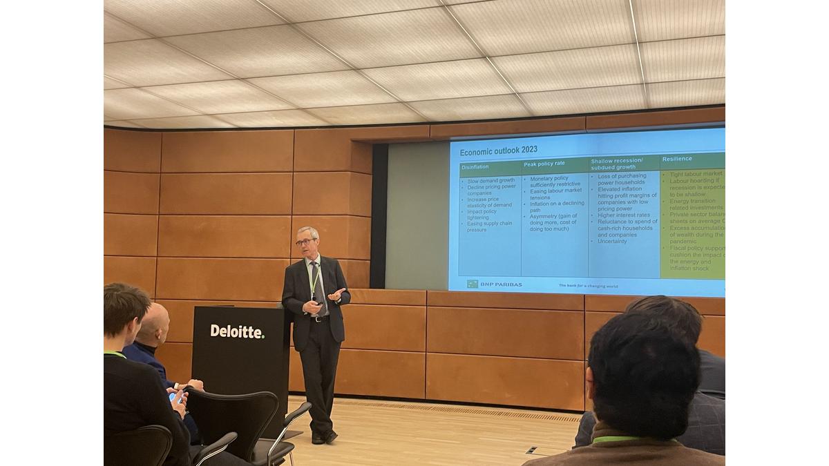 As W. de Vijlder thoroughly guided the attendees through the many parameters of the world economy, he left no stone unturned and presented many interesting points. Of them, one of the main take-aways was that we should hold our breath through 2023 while the world economy heals after a hefty year 2022, and patiently wait for much brighter 2024.