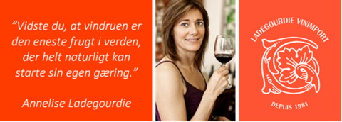 Wine importer Annelise Ladegourdie looks forward to welcoming you. * Tel. 35 82 28 56 * e-mail: info@ladegourdie.dk *
