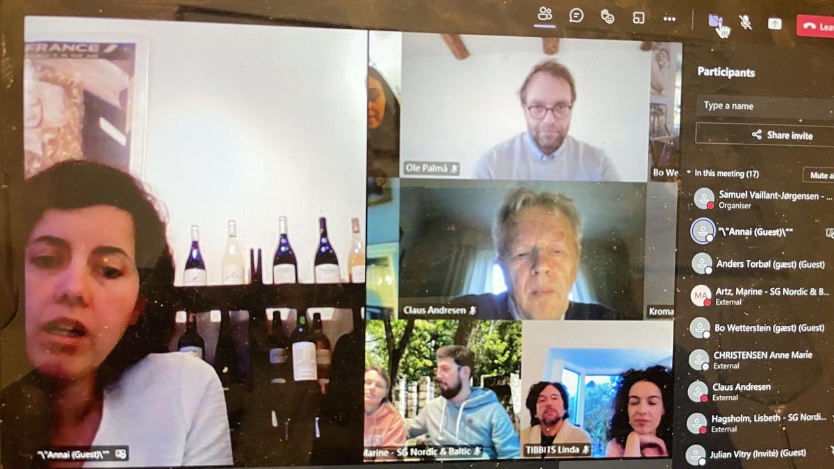 As a substitute to the yearly Christmas wine tasting, this year the Chamber of Commerce has been organizing an online wine tasting in collaboration with Les Grands Chais de France. The wine tasting took place on the 11th and 25th of March in company with sommelier Annai Salazar. With an introduction of how to taste, smell and analyze wines in general, Annai also presented and explained the four following wines: