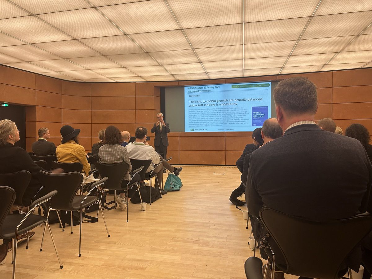 This year again, on the 2nd of February 2024, the Danish-French Chamber of Commerce and the Benelux Business Club had the pleasure and honour of welcoming William De Vijlder, Group Chief Economist of BNP Paribas, for a conference about the Economic Outlook 2024. 70 participants joined us on this Friday morning for a light breakfast and valuable insights on the economic forecasts in this year to come.