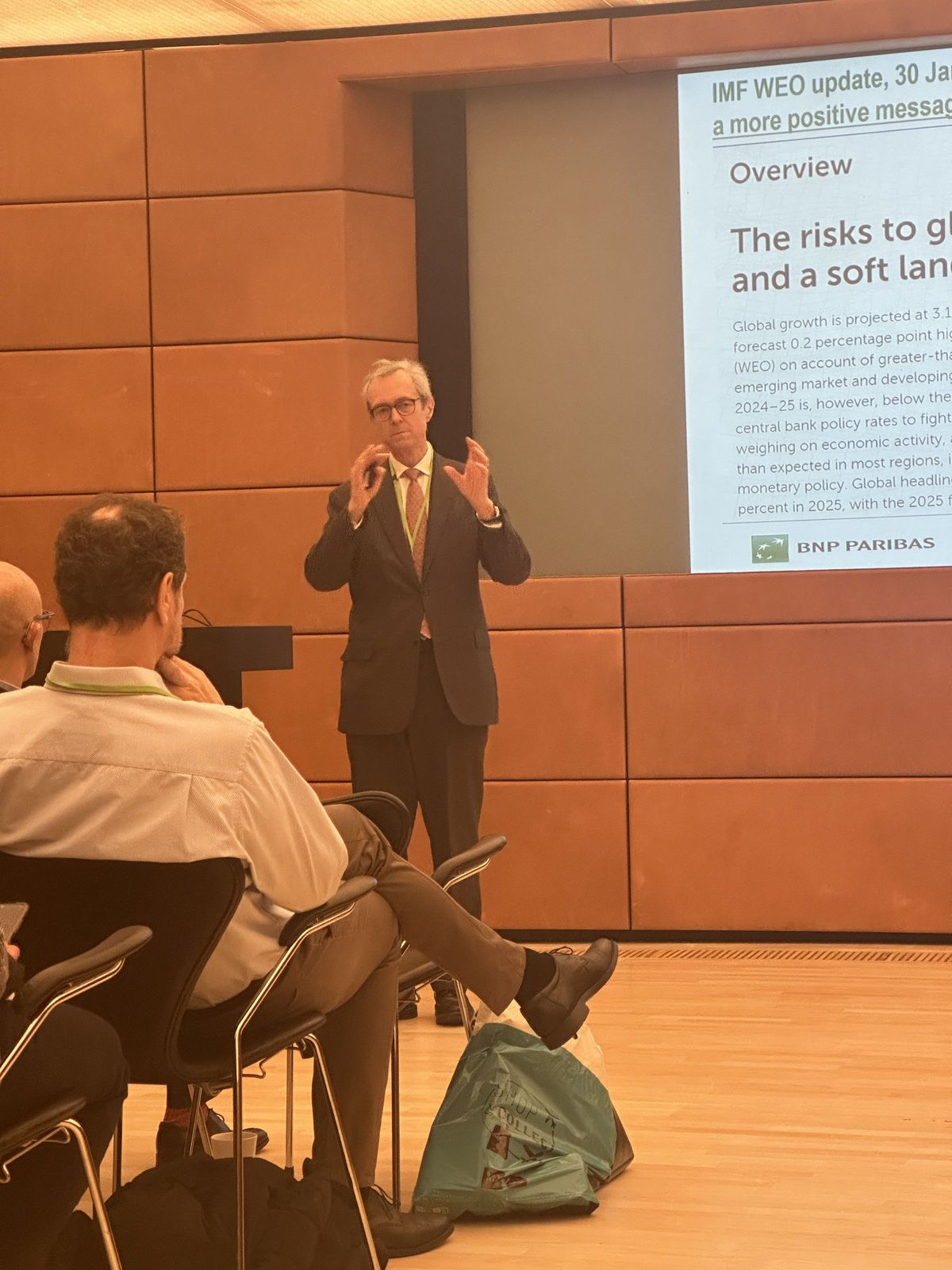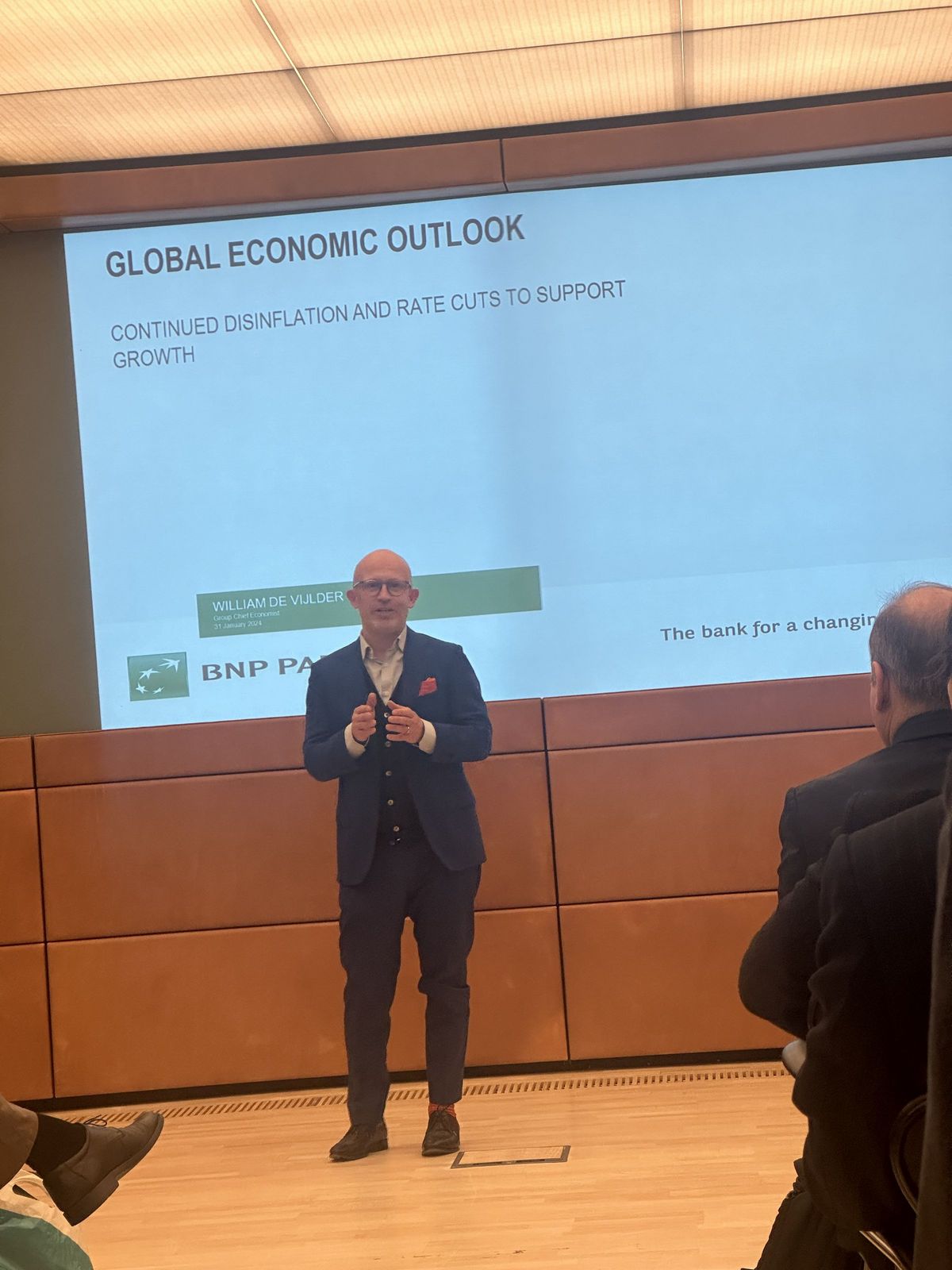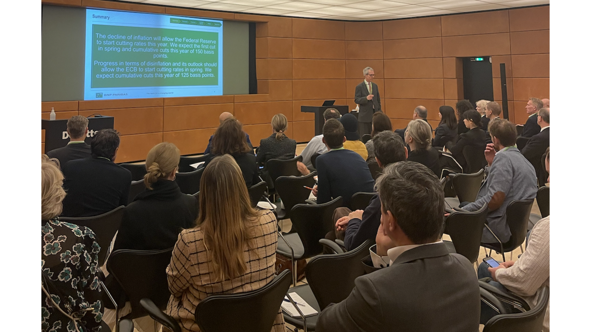 After Deloitte’s interesting presentation, William de Vijlder went through the economic and financial scenarios of 2024 from his thorough analysis. His takeaway message to the audience was clear: Relief. After a long period of rising inflation and rocketing energy prices, inflation is decreasing, and rates are going down. Although 2024 will also mark a year of geopolitical uncertainty, especially with upcoming elections in the EU and the US, we were encouraged to remain optimistic about the economy in 2024. Please find his presentation here.