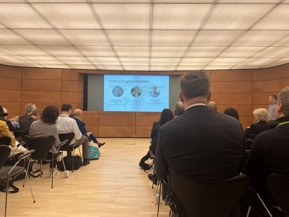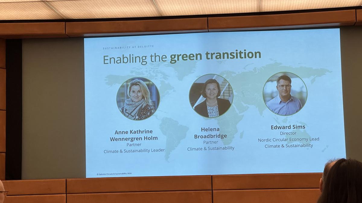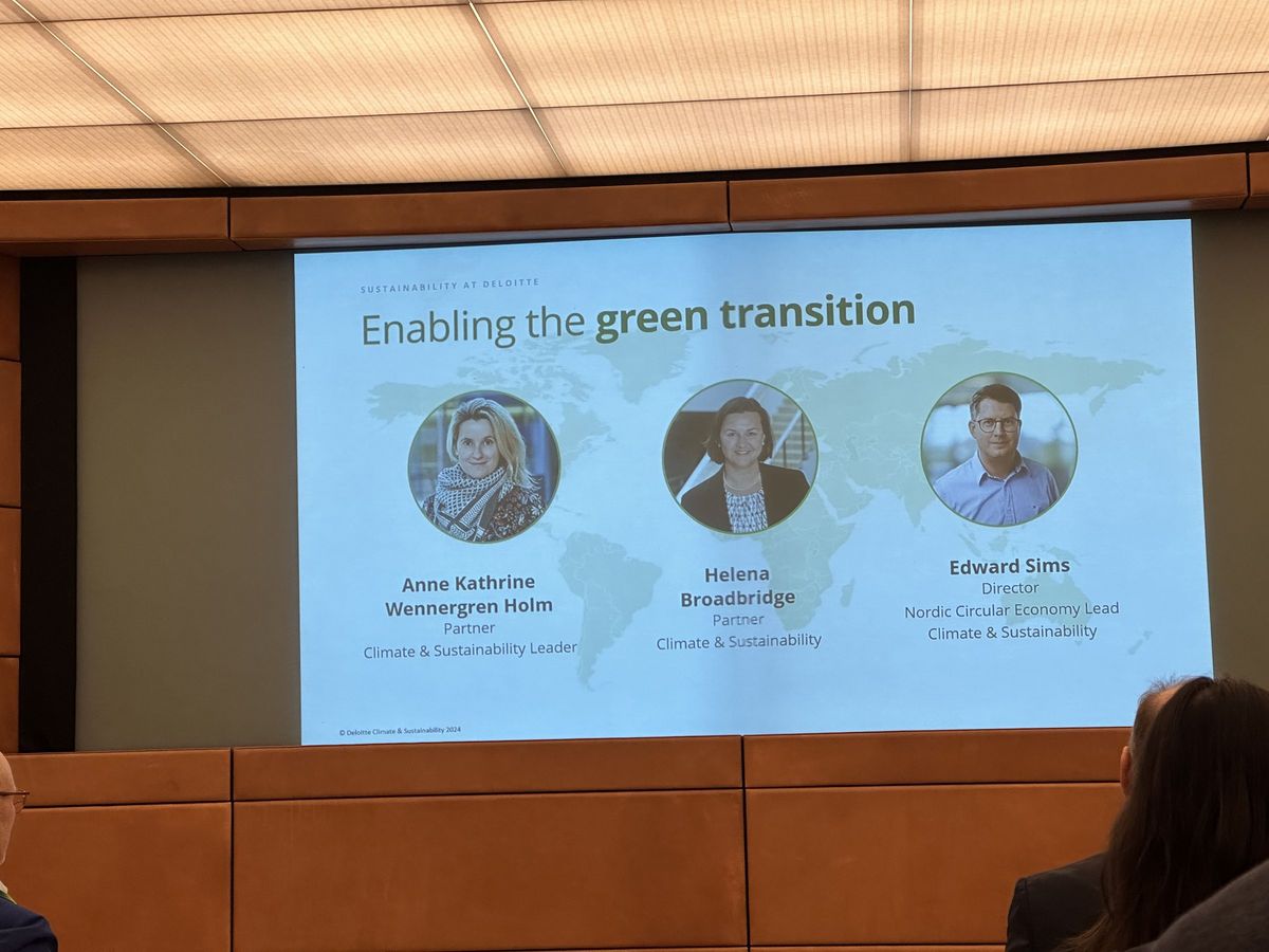 The conference was held at Deloitte where climate & sustainability experts Anne Kathrine Wennergren Holm, Helena Broadbridge and Edward Sims shared insights on how they help clients boosting performance and increasing profits by integrating considerations about purpose, people and planet in core business processes. They also discussed the impacts of new sustainability regulation and digitization on future-proof business strategy.