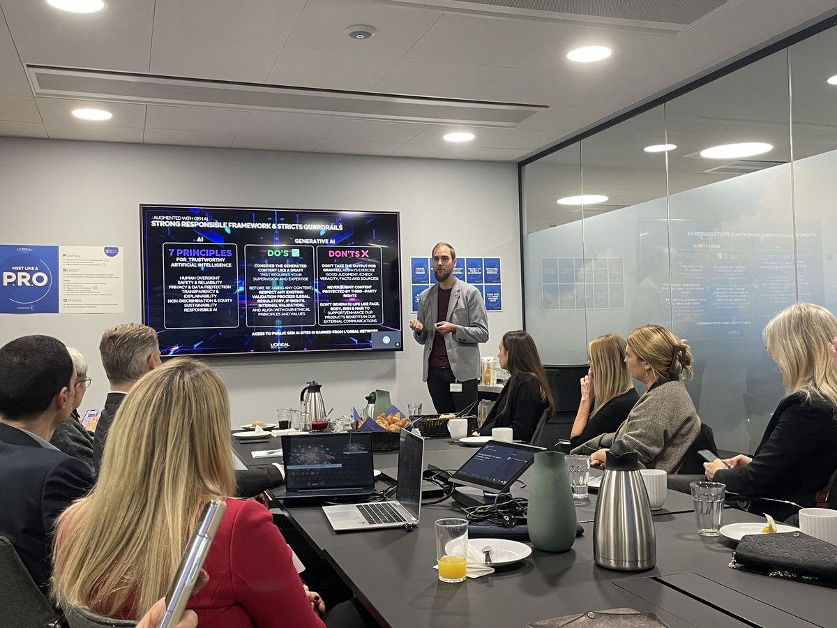 On Friday December 13, the HR Committee had the great pleasure to visit L'Oréal Headquarters for a meeting about AI in HR. During the meeting, the committee learned about the AI strategy and use of L'Oréal and how AI is impacts HR. Christoffer Vildershøj, Head of Consumer Engagement L'Oréal Nordics, presented GenAI and the use within the organisation and the general trends, while Norma Taylor-Ladousse, CMO Talent Acquisition L'Oréal, explained the impact of AI on HR practices and talent acquisition for the group.