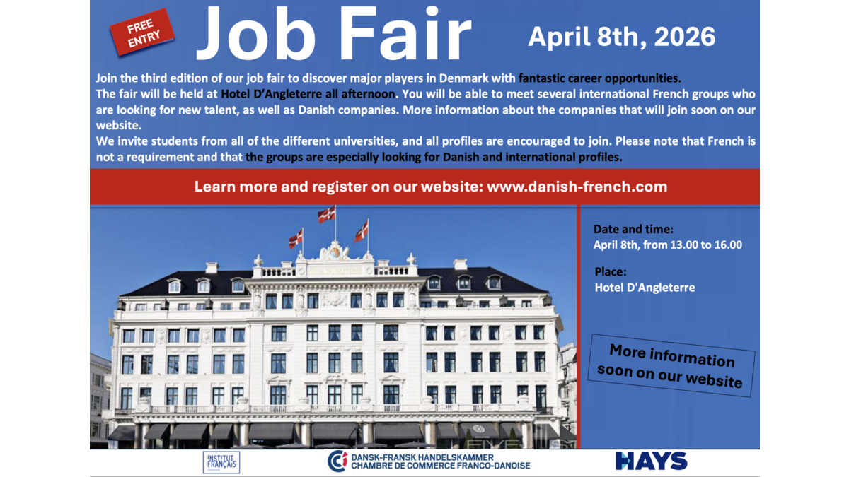 You might have noticed that we posted information about a new edition of our annual job fair on our website a few weeks ago. We planned to organise our fair in April 2026 at Hotel d'Angleterre.