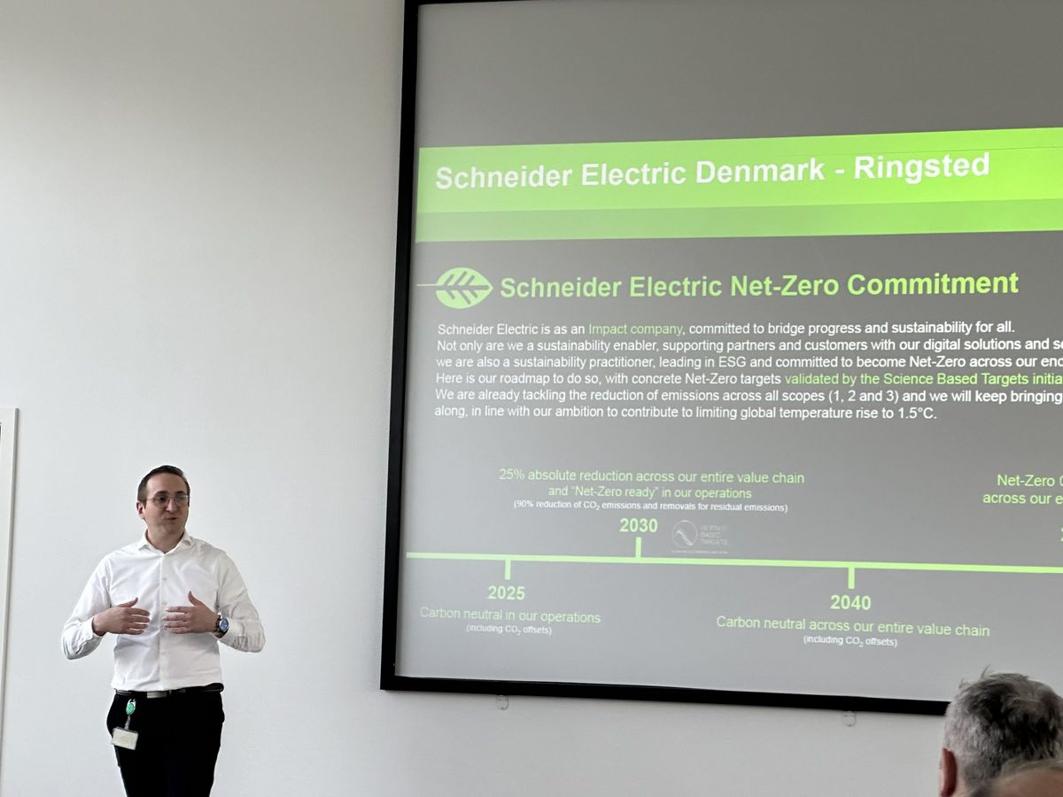 We started the day with presentations, where Schneider shared their comprehensive and impressive sustainability strategy. Indeed, the Schneider Electric operations in Ringsted achieved complete carbon neutrality in 2024. The plant is undergoing a thorough transformation, driven by sustainability, energy efficiency, and operational efficiency goals. The results are momentous, and the Ringsted factory has become a best case example on industrial green transformation - within the group as well as to the industry at large.