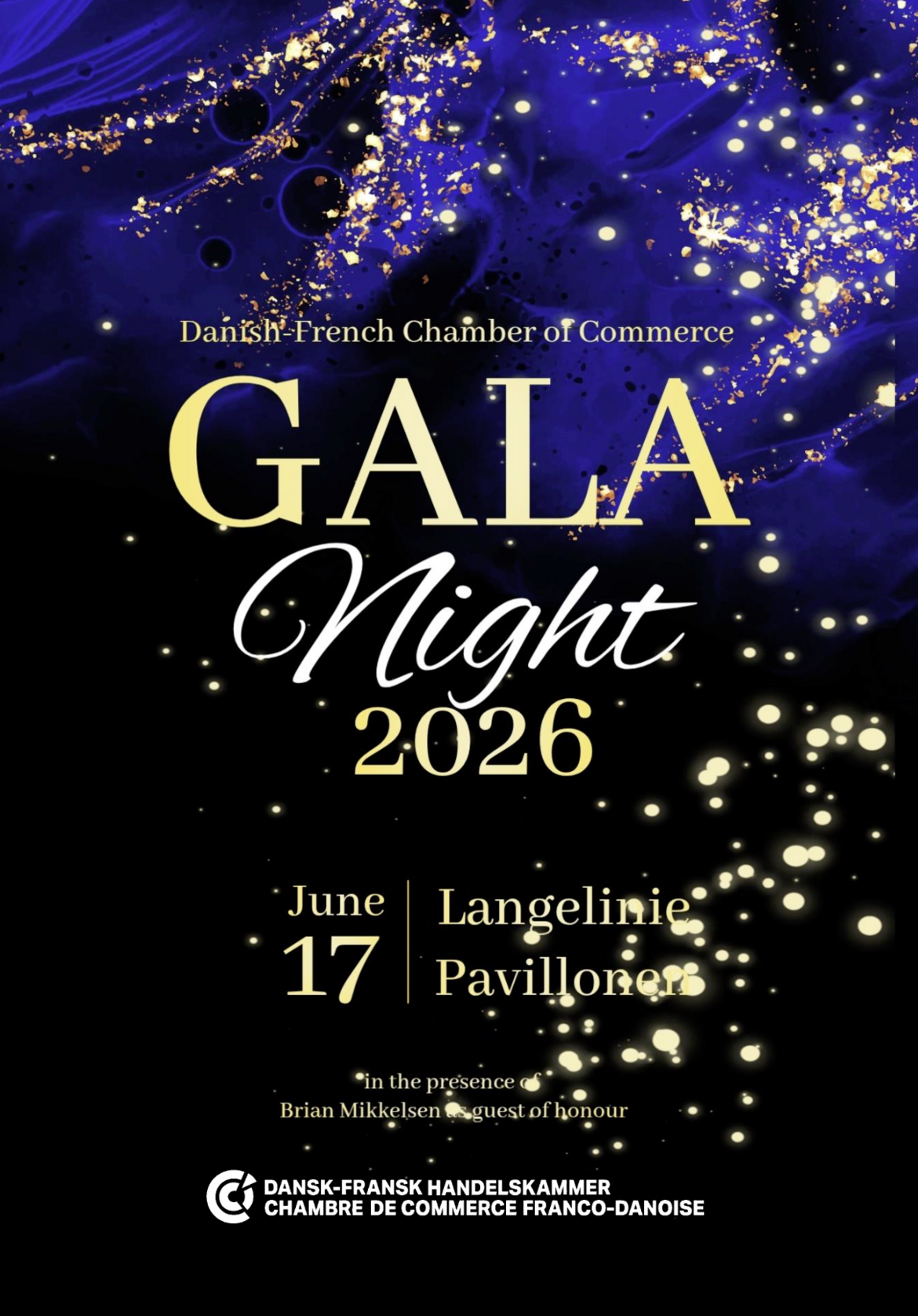 This year’s edition will be particularly special, as we will celebrate not only our strong Danish-French community, but also a key moment in the Chamber’s history. During the evening, we will pay tribute to our Chairman, Anders Torbøl, for his remarkable contribution over the past 15 years, and we will also bid farewell to the French Ambassador to Denmark, Christophe Parisot.