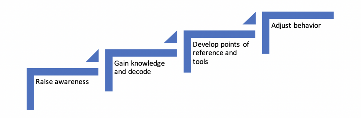 Steps to intercultural agility – scheme freely adapted from “Communicate and cooperate with Scandinavians” – AFNOR publishing